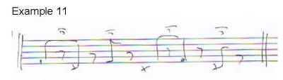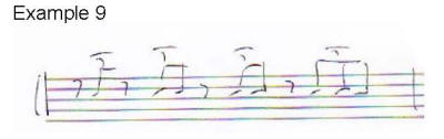 but we have just modulated into sixteenths in example five. Notice how