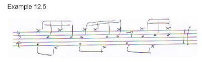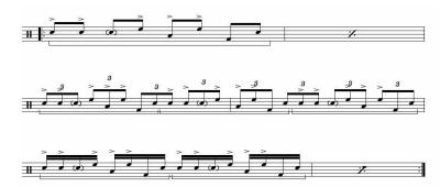 result of rhythmically modulating a phrase into triplets. We then