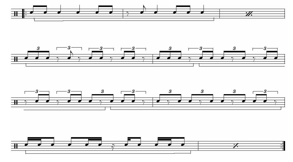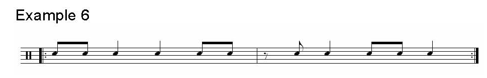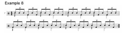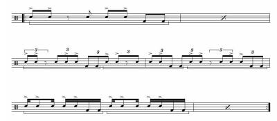 Lets take a simple pattern of three eighth notes followed by an eighth