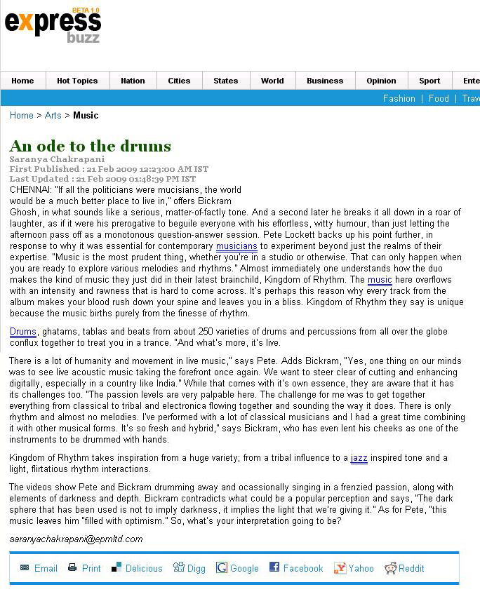 | Pete's recent India press |