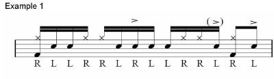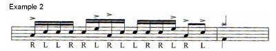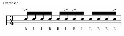 accent whilst the left hand plays the second accent. The