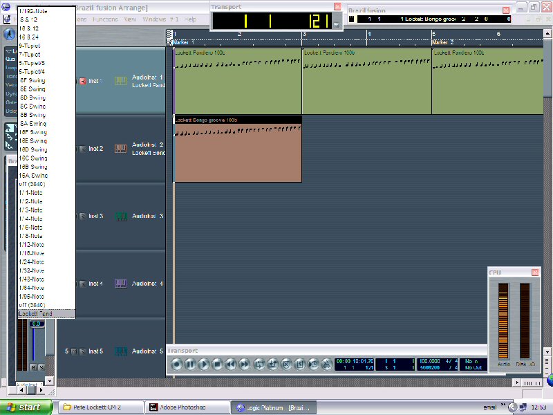 from the quantize pull-down menu. This quantizes the Bongo part to the